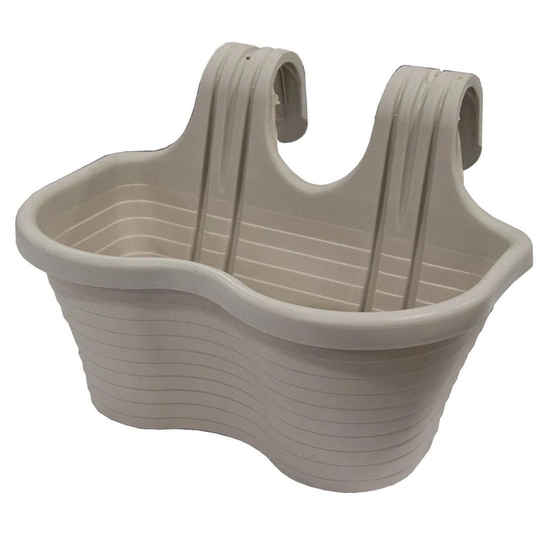 3 x Hanging Planter Plant Pots Trough Garden Fence Balcony Railing Flower Pot Beige