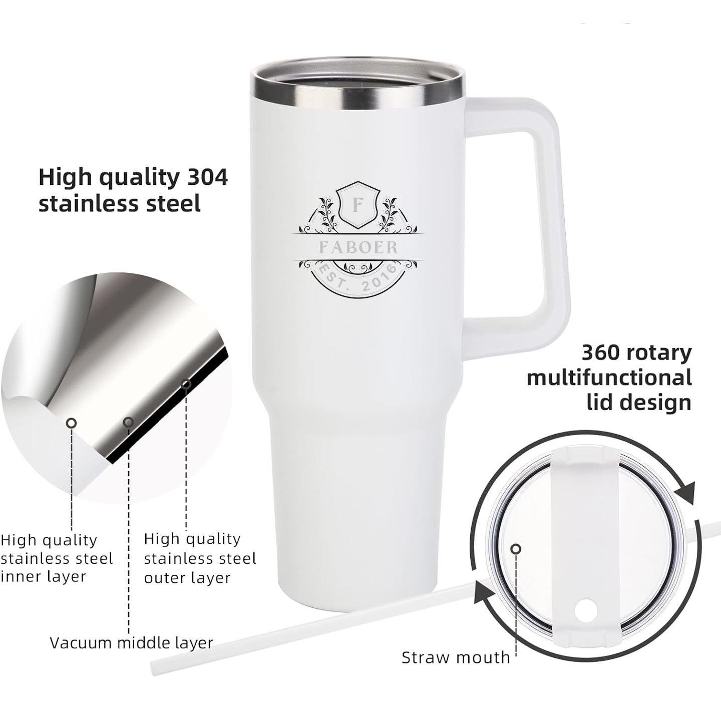 The Faboer 40OZ Vacuum Tumbler Jug with Straw (1.2L) White – Your Perfect On-the-Go Companion!
