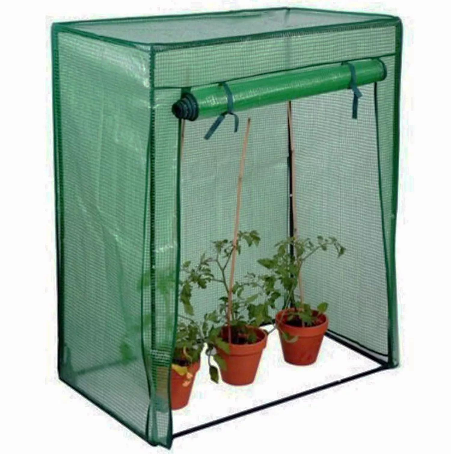 This Quick & Easy to assemble Greenhouse is ideal for Tomato plants plus other plants/vegetables. It is manufactured with a 125g/m² PE weatherproof cover with 2% UV which will provide protection for plants in any weather, a green powder coated steel tube frame construction with PP connectors, plus roll up zip front for easy access.The Greenhouse provides plenty of space for up to 3 tomato plants. A great and healthy addition to any garden or patio. Approximately 100 x 50cm base area for delicate seedlings and ripe tomatoes will be enough room to grow and be well protected from wind and bad weather. Regulate the temperature inside the Greenhouse by varying the opening of the large, double-zippered door.